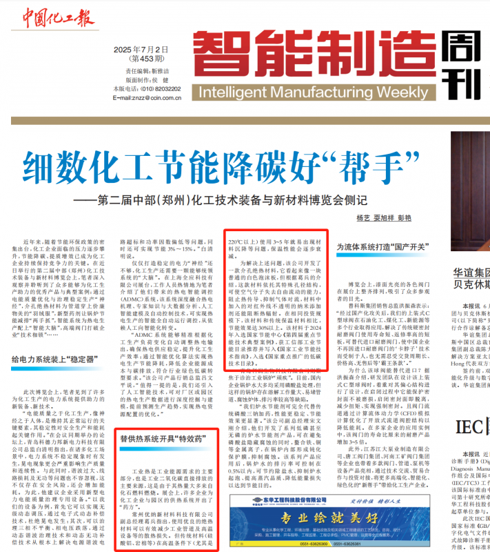 《中國(guó)化工報(bào)》:優(yōu)納新材替供熱系統(tǒng)開(kāi)具“特效藥”